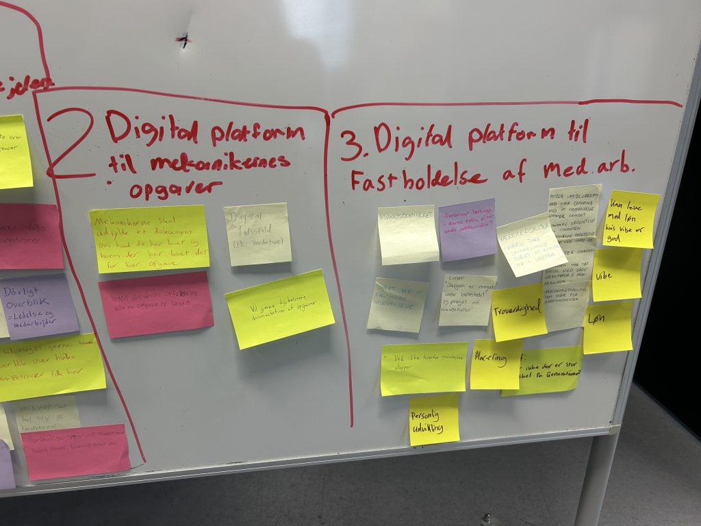 Efter mødet med Stiholt fandt vi frem til, at ‘kompetence- og opgave overblikket’ kunne kombineres, fordi det de ledte efter var et mere integreret produkt som gav overblik, frem for f.eks. et nyt system til værkstedsarbejderne (allerede ved at inkorporere nye IT-systemer). Muligheden for, om et nyt system kan integreres med deres allerede eksisterende intranet, blev bragt op som en løsning, der kan undersøges nærmere, da de heller ikke var afskrækket ved tanken om en ny platform.