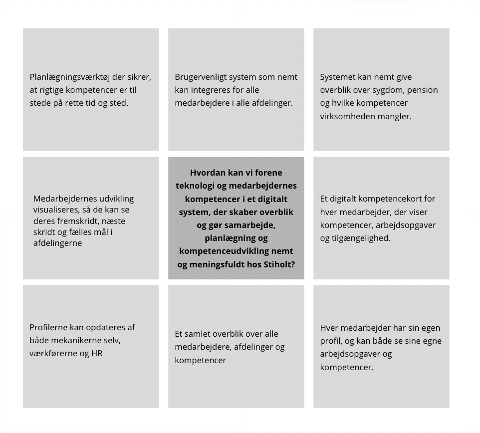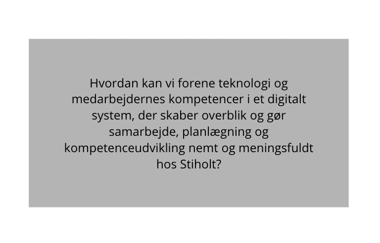 “Hvordan kan vi forene teknologi og medarbejdernes kompetencer i et digitalt system, der skaber overblik og gør samarbejde, planlægning og kompetenceudvikling nemt og meningsfuldt hos Stiholt?”