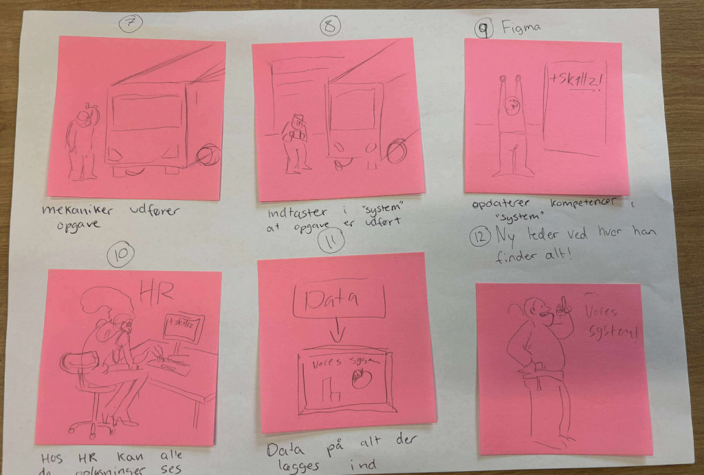- Vores storyboard viser også at man fra HR kan tilgå systemet og at Skillholt snakker sammen med HR-on systemet, så alt opdateres de forskellige steder.