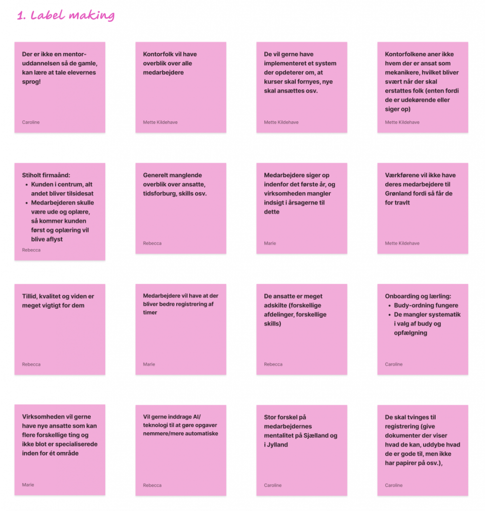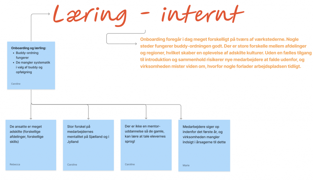 - Vi har i dag arbejdet med affinity diagram. Det er en 4-trins metode, hvor vi gennemarbejder og analyserer det materiale vi har samlet dagene op til i dag.