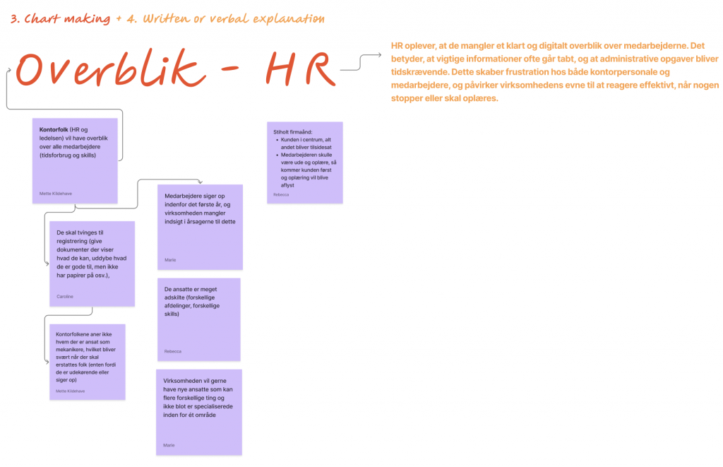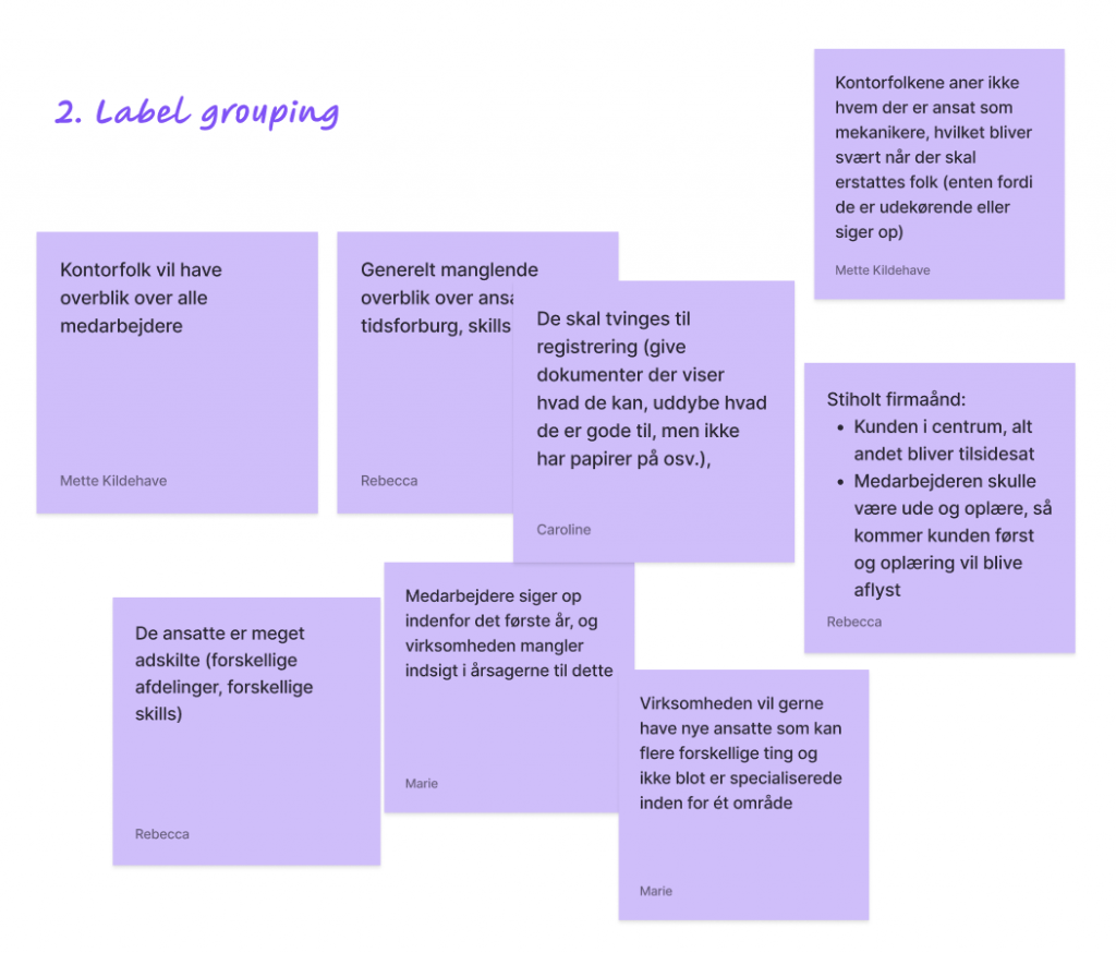 - Ved trin 3 navngiver vi grupperingerne fx “Overblik – HR” og “Læring – internt”.