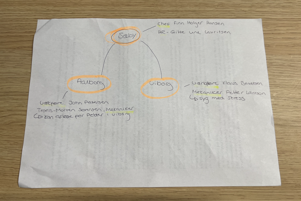 - Vi læste casen igennem og begyndte at diskutere, hvordan vi forstår den. Vi forstod ting lidt forskelligt, men vi endte med at komme frem til en fælles forståelse. Vi begyndte også at diskutere/brainstorme ideer til digitale-/AI løsninger.